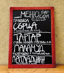 – това, че ястията са написани на френски език, не означава, че са френски. Beignets au persil (магданозени кюфтета), Salade de tomates du gardin (салата с градински домат), Sallade Allard (зелена салата от маруля) са само някои от многото примери в менюто, които карат изкушеният кулинарно посетител да се чувства сякаш си поръчва „Grilled old man from Bansko“.
